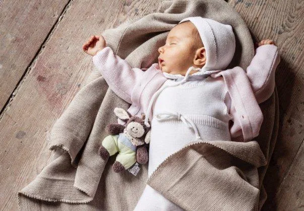 Reversible white fleece bed bumper with the edge and back in beige / white pleated fabric, finished with beige piping, removable cover with zipper.